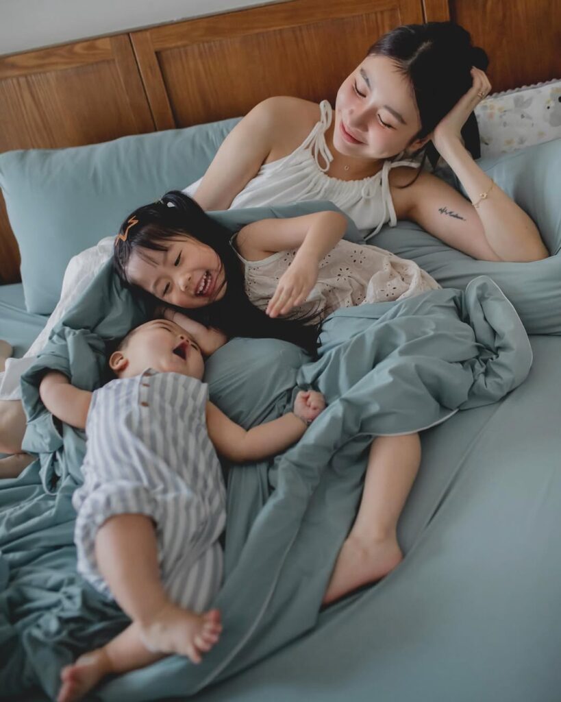 在床上陪孩子笑、鬧、躺著不動,